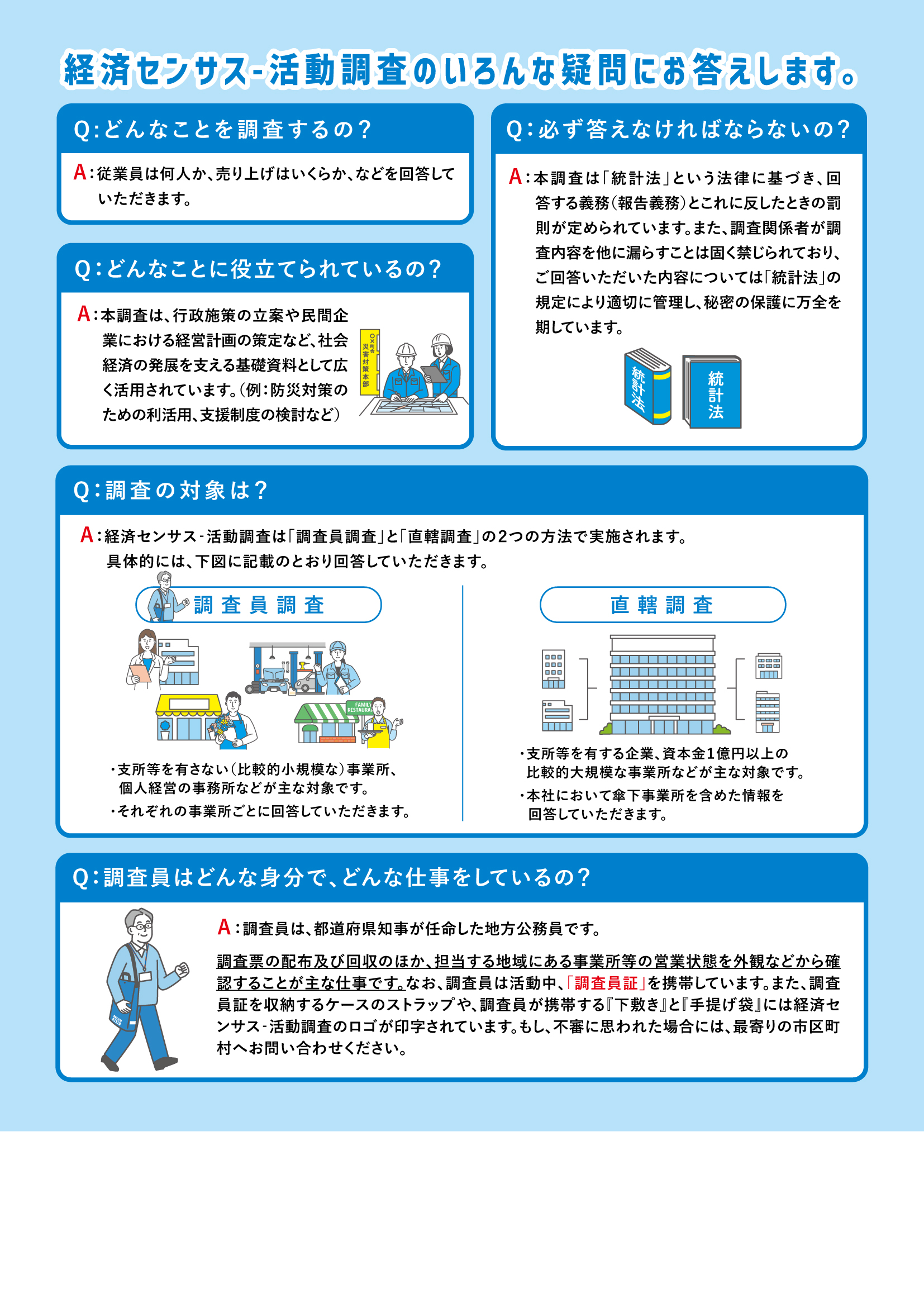 調査をお願いする企業・事業所には、調査書類を、4~5月に順次郵送いたしますので、インターネット(郵送等で回答可)にて、回答の周知依頼がありました。